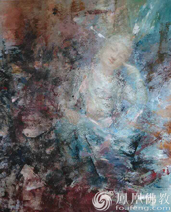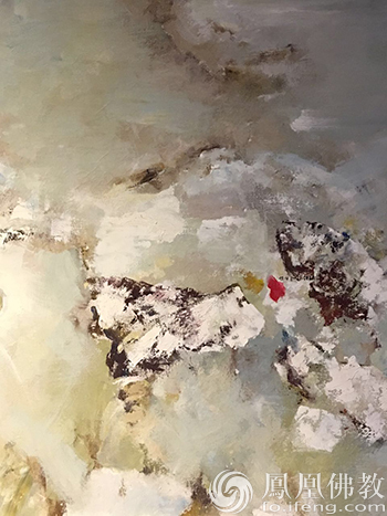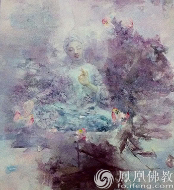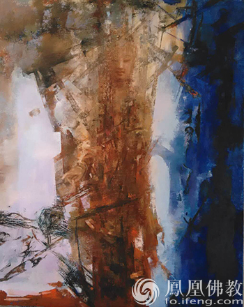 在这十几年间,他创作了很多油画作品,其风格纯净空灵、闲适优美,而画的内容则是表现各种庄严慈悲的佛像。禅道意境深深影响着他的绘画思想和手法,空即是无尽之有,真正的玄妙只有意念神知。佛菩萨的形貌在他的笔下正大雍容,圆融无碍……这些画作是他生活、心性、灵魂的诠释。让我们聆听他与山石、树木、云风交织的心灵之声……