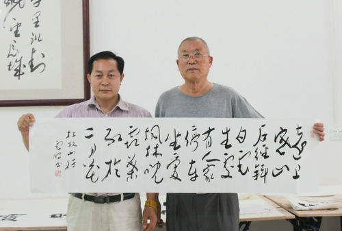 著名书法家鹏体草书创始人王云鹏接受记者采访时合影留