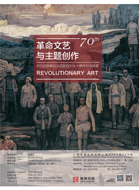 展览介绍: “革命文艺与主题创作——纪念中国人民抗日战争暨世界反法西斯战争胜利70周年特展” 将于2015年7月26日至10月15日在龙美术馆(浦东馆)第二展厅举办,敬请关注!