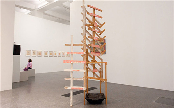 德国艺术家马丁·基彭贝尔格(Martin Kippenberger,1953-1997)被认为是同代艺术家中最有天分的一位。2011年他的雕塑作品《当屋顶开始漏雨》(When the Roof begins to Leak)被借到德国多特蒙德东墙博物馆展出,这件作品整体上是一个用木条拼接成的塔形构造,底部放置了一个呈颜料的水槽来模仿雨水。不过一位极其负责的清洁人员却误以为有人把水槽弄脏了,认真把水槽清洗得干干净净。