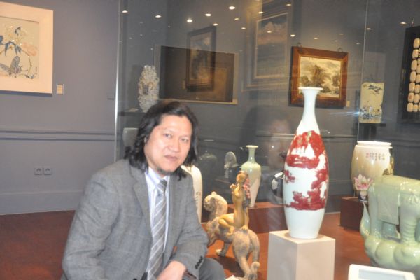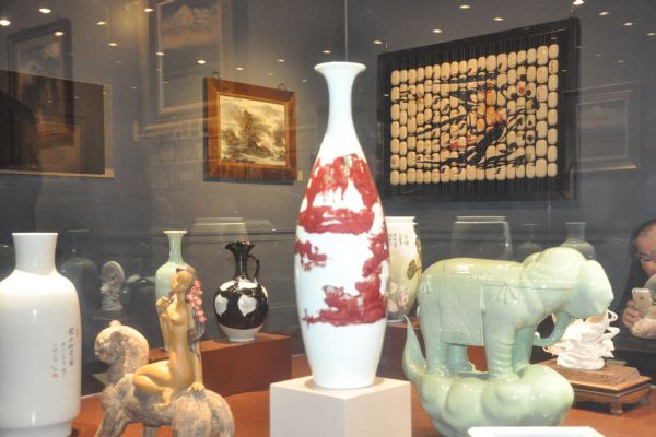 叶建新不仅仅是一位著名的水墨山水画家,他还是一位德高望重的中国陶瓷设计艺术大师,现任中华陶瓷大师联盟副主席,他通过不断尝试在瓷器上创作自己的水墨山水艺术,最终创造出独特的炉火纯青的的青花釉里红技艺,开创了在陶瓷上创作出鲜艳欲滴的火中凤凰青花釉里红的先河,为中国青花釉增添了浓墨重彩的一笔。古代的青花釉里红普遍呈现暗红色,叶教授通过自己的实践研究,使釉里红呈现出鲜艳瑰丽的颜色 红如玛瑙,绿如翡翠的特征。为中国青花釉里红掀开了崭新的一页,谱写出新的华章。