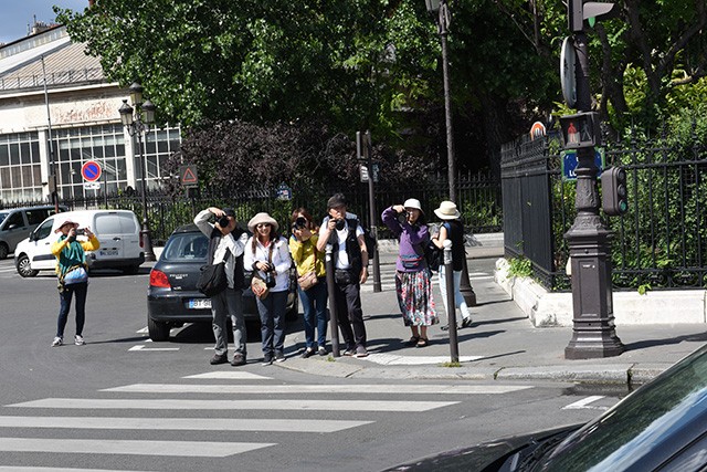 然而,此次活动的策划人晏樱是湖南老乡,现任里昂大学的教师,她对此胸有成竹,因为在大家来巴黎之前,她已经做过功课,很多地方实地踩过点了。这样一来,采风进展当然顺利。连日来。在荣军院、亚历山大三世大桥、香榭丽大道、大皇宫、协和广场、共和广场、巴士底纪念碑、埃菲尔铁塔、塞纳河边书店、卢浮宫、巴黎圣母院、蒙马特圣心教堂等布列松常来拍摄的地点,都留下这一群湖南摄影人徜徉流连的足迹。令人感叹的是:半个世纪弹指一挥间,巴黎城区旧貌依然,巴黎不追求“旧貌换新颜”,而高度重视城市建设规划的科学规范,给人留下了深刻的印象,也为此次成功的重走布列松之路创造了条件。
