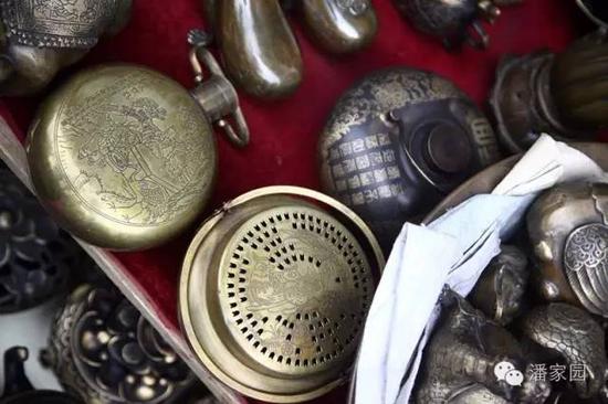 潘家园不仅集中展示了我国各民族不同时代的特色文化产品,这几年市场上异国风情的商品也逐渐增多,如德国、美国、日本的老式钟表、座钟、相机,韩国的瓷器,斯里兰卡的银器等,这些不同民间特色的工艺品从世界各地汇聚潘家园,又从这里销往世界各地。