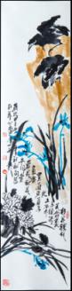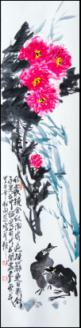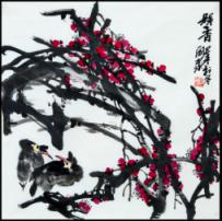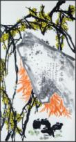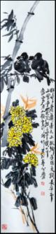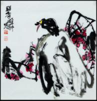 如果说《迎客松》是阎老师侧重写实的上乘之作,那么后面几幅花鸟则更侧重写意。前者大有龚贤、石涛之遗响,后者多有梅纯一、刘继朝、李百忍之余韵。前者布局多在借景抒发自然意趣,着眼点在于整体大局;后者描绘多在借物抒情,出发点在个人,突出的是局部,即以小见大。