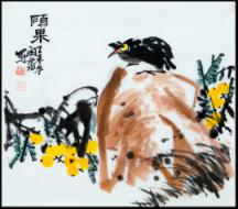 《梅香图》《硕果图》《八哥图》都是撷取生活中的一角,局部放大,用简单的笔触随意而发,一挥而就勾勒出胸中意味,春秋笔法、微言大义,突出个性的张扬和情趣的发挥。
