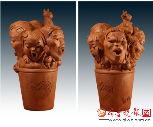 作为一级美术师,俞畅先生注重于挖掘人物神态,从形从心展现对象内涵。据了解,本次雕塑的“志愿一生”作品使用纯色材料,并没有加入多元化色彩表达,但是作品的线条、结构对比性非常强烈,刻画的内容也非常丰富。该作品以一个“全家桶”装容不同志愿者形象,其中既有父亲、母亲,又有婆婆、公公,象征不同层次的人群均可以加入到志愿者这个大家庭中。一个大杯子,既有“温暖大家庭”的涵义,又暗喻“一辈子”。的确,对于志愿哥张军文而言,志愿者工作是一辈子都值得为之奋斗的事业,迄今为止,他仍然走在志愿服务的最前线,不断为推动志愿文明新风尚发展作出努力。