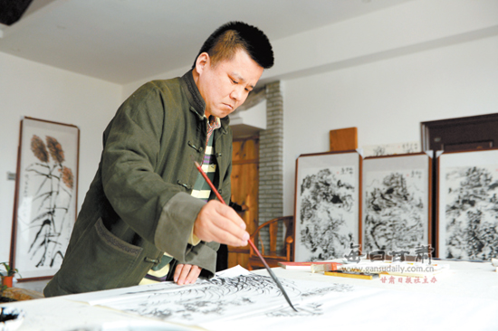 古丰在兰州作画。兰州晨报首席记者裴强摄