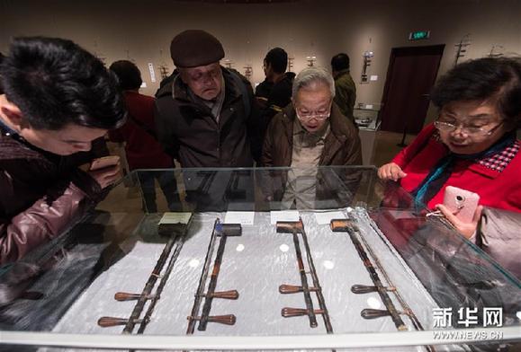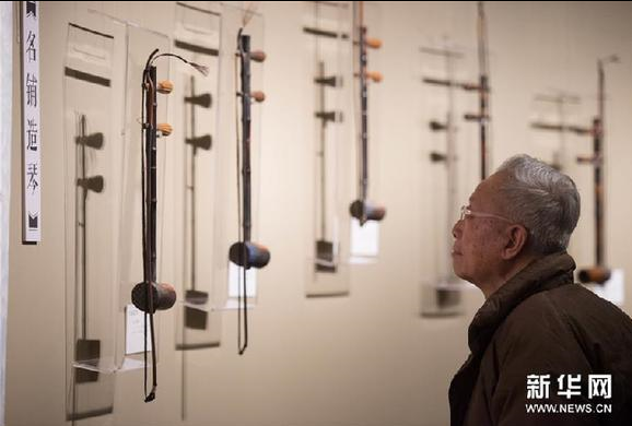 2月15日,观众在欣赏展出的京胡珍品。新华社记者 罗晓光 摄