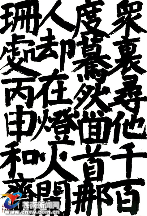 就展览这些作品,从写字的角度来看,都不讨好,楷书写的歪歪扭扭,似粗头乱服之“乞丐”,草书写的分不清一个个字,看不懂。在很多人眼里,加煦的书法走入了歧途,不可救药。还不如弄个小行草或小楷写写,入个展获个奖实惠。