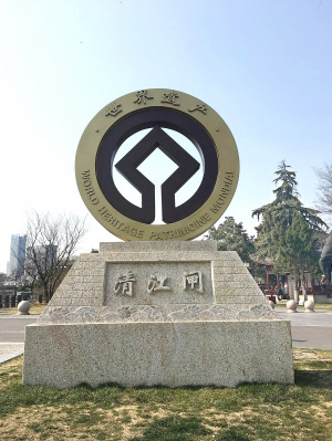 淮安市水利资产经营有限公司工作人员告诉记者,此雕塑是大运河市区段首个安装的“世界遗产标志”。记者看到,此雕塑位于中洲岛西入口处,古清江闸上,高2.6米、长2米、宽0.6米,雕塑上部为圆形锻铜材质的“世界遗产”标志,底部为雕刻有“清江闸”字样的花岗岩基座。“这个雕塑是整个中洲岛景区的一个亮点,将会成为游客摄影留念的又一佳处。”上述工作人员表示。