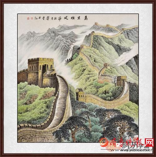 由于玄关本身的位置限制,所以选择这些小尺寸的山水画更为美观合适,李林宏老师的这幅斗方长城山水画挂在玄关大气有品位,对家中的风水也好,玄关挂长城山水画可以说是极佳的选择,长城是一种正气凛然的象征,在玄关挡掉一切污秽之气,从风水寓意上来说:长城取象中国巨龙,龙脉绵延千里,像一条巨龙在腾飞,寓意深刻,长城画挂在进门处玄关的位置,蜿蜒的长城像守家平安的堡垒一般,这幅长城山水画也是领导人选择挂在办公室的,足见其艺术价值,画面中长城绵延数万里,宛如一条东方巨龙,寓意基牢永固;步步高升事业如日中天;古树松柏一为招财挡灾,也是万古长青,长寿的象征;山脉延绵不断寓意龙脉相传,家兴业旺。观赏国画长城水画卷,让人大有"登山则情满于山,观海则情溢于海"之感,特作品既有着深厚的传统积淀,又有着鲜明的时代气息,雄浑博大、气势恢宏,大靠山长城山水画玄关品位之选。