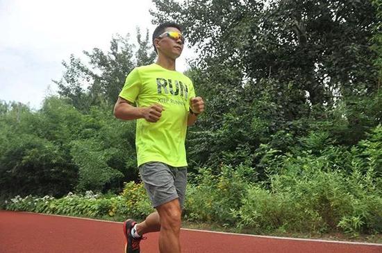 在奥森跑步的白斌。
