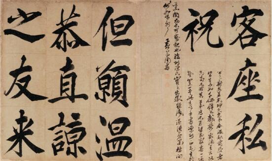 莫道圣门无口诀,良知两字是参同。 此诗为心学大师王阳明的《良知诗四绝卷》第一首,作于嘉靖七年(1528年),书法作品现藏于湖北省博物馆。 作为一名思想家,阳明先生为我们留下了许多宝贵的典籍,但他的墨迹、信札却屈指可数。而即日起至2月28日,在绍兴博物馆举办的“圣贤之道——阳明的故事”王阳明个展中,我们就可以看到其书法的空前大集合。据策展人沈一萍介绍,此次展览是绍兴博物馆的原创特展,展出阳明先生书法作品、拓片及著作等50余件(套),其中一级文物近10件。故宫博物院就为此次展览出借了6件院藏珍贵文物。值得一提的是,故宫博物院藏《龙江留别诗卷》、广东省博物馆藏《骢马归朝诗叙诗卷》、湖北省博物馆藏《良知四绝诗卷》、浙江省博物馆藏《奉寿西冈罗老先生诗卷》等著名作品,都是首次外展与观众见面。 徐渭曾评价说:“王羲之以书掩其人,王守仁(阳明)则以人掩其书。”王阳明之书遒迈冲逸,人称“如宿世仙人生具灵气,故其韵高冥合”。而王阳明则认为:随时随事只在心上学。 从心出发,他的字与他的思想,又给我们以怎样的启示?本期,我们选用了两篇文章,解读阳明先生的书法艺术,以飨读者。 王阳明 客座私祝册页(局部) 44×36cm 1527年 余姚市文物保护管理所藏 王守仁(1472年10月31日—1529年1月9日),汉族,幼名云,字伯安,别号阳明。浙江绍兴府余姚县(今属宁波余姚)人,因曾筑室于会稽山阳明洞,自号阳明子,学者称之为阳明先生,亦称王阳明。明代著名的思想家、文学家、哲学家和军事家,陆王心学之集大成者,精通儒家、道家、佛家。 书如其人 王阳明书艺浅谈 ——计文渊(余姚) 明代书法,崇尚帖学,往往类多行草。卓越者能上追晋唐,尤擅简牍之美,几越唐宋。早期声名最著者,当推三宋(宋克、宋璲、宋广)和二沈(沈度、沈粲)。至中期祝允明、文徵明、王宠等吴门派名家出现,以高超的书艺领袖群伦,独步一时,影响甚远。同期还有一批名儒学士,视书法为余艺,也无意以书法名家。皆以道德文章、忠义理学著称于世,而其书法又时常流露出其本人的气质与学养,在书艺造诣上确有鲜明的个性,其中王阳明就是一位杰出的代表。 王阳明的书法在当时已为有识者所称誉,明中后期著名书画家徐渭论阳明书云:“古人论右军以书掩其人,新建(阳明)先生乃不然,以人掩其书,观其墨迹,非不翩翩然凤翥而龙蟠也,使其人少亚于书,则书已传矣。”明白说出了王阳明的书法非同一般,恰恰是由于其各方面的学识修养和崇高的人品威望掩盖了他的书名的道理。明清之际著名学者归庄,对王阳明的书法更为倾倒,他说:“阳明先生一代儒宗,而亦工于书法如此,岂非艺即道耶?余学道不成而谬以能书名,既耻为一艺之士,其敢不勉!”可见当时对阳明书艺的仰慕之情。据《王文成公全书·年谱》记载,王阳明17岁时从外舅宦游洪都官署中蓄纸数箧,他日取学书,比归,数箧皆空,书法大进。阳明尝示学者曰:“吾始学书,对模古帖,止得字形,后举笔不轻落纸,凝思静虑,拟形于心,久之始通其法。既后读明道(宋程伯淳)先生书曰:‘吾作字甚敬,非是要字好,只此是学。’既非要字好,又何学也?乃知古人随时事只在心上学,此心精明,字好亦在其中矣。”后与学者论格物,多举此为证。王阳明自谓学书也归之于“心的灵明”,认为主要在于“心悟”,这是他“以心治学”的思想在学书上的体现。其实书法艺术既是“心学”,又是“形学”,二者都不可偏废。他早年也注重临帖学习,上追晋唐,师法二王。后来通过认识感悟,在创作时才能挥洒自如,随心所欲,从古法而不为古法所囿,在风神、气质上达到了高远的境界。《绍兴志》有云:“新建(阳明)善行书,出自《圣教序》,得右军骨,第波竖微不脱张南安(弼)、李文正(东阳)法耳,然清劲绝伦。”纵观他传世的行书墨迹,的确秀拔超逸,爽爽如有神力,直如竹之劲节,兰之幽芳,可谓与明德相印也。 王阳明幼承庭训,书法自开蒙之际便从楷书打下了扎实的基底。早年曾受过虞世南、颜真卿的影响,同时又汲取了欧阳询、柳公权峭拔劲利的风骨。行笔深著稳健,结体端庄清劲。传世如《时雨堂记》、《纪功碑》等正书作品,显得风神高华,蔚然庄严,深具大家风范。王阳明在30岁前后,对于艺文、释道一度爱好。目前还能欣赏到他创作的山水立轴,其闲情逸趣跃然纸上;书风又不同程度受到李东阳等人的影响,意态安祥,整体风格工稳劲健,已初露其个性风貌。特别在贬谪龙场其间,对人生感受的彻悟,以狷介超脱的人生态度,在书法上表现得淋漓尽致。其草书如《何陋轩记》、《象祠记》等,行笔疾如风雨,矫若龙蛇,纵横跌宕,变化万端,能另辟蹊径,挥洒出神韵超逸、气势豪迈的佳作,具有明显的创新精神。中后期作的《龙江留别诗卷》、《回军上杭诗轴》等,随意自然,又用笔精湛,不失法度,结体向背互参,笔法藏露得体,不难发现他对《十七帖》研习的深厚功力。其他行书代表作有《矫亭说》、《四箴卷》、《纪梦诗题壁》等作品,深得李北海(邕)、黄山谷(庭坚)笔意,蕴藉而隽逸,豪放而舒展。王阳明直至去世前所作的书札,依然是雅静洒脱,从容平和。王阳明一生中留下最多的是书札手迹,它所涉及到的内容很广,能真实表达出作者当时的思想与感情。对于今人了解他的思想、行为、家庭、交友等情况都有十分重要的作用。书札具有书法艺术价