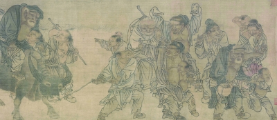 踏歌图 局部(国画) 宋 马远 故宫博物院藏 田畯醉归图 局部(国画) 宋 刘履中款 故宫博物院藏 倘若不限定在夏季,那么对于农村休闲生活的描绘早在宋代就已经是个重要的艺术主题了。 存世宋画中,有一类表现的是乡村的生活景象,如《田畯醉归图》(故宫博物院)、《春社醉归图》(波士顿美术馆)、《花坞醉归图》(上海博物馆)等,都描绘了醉醺醺的簪花老叟骑在牛背或驴背上,被人护送回村的景象。此外,《踏歌图》(故宫博物院)中也有醉酒簪花、踏歌而行的老少妇孺。画中的时间都是新年伊始的春天,放在宋代,都可以被称作“村田乐”。 什么是“村田乐”呢?北宋后期的文人郭祥正(1035—1113)在友人夏公酉家见到北宋前期宫廷画家高克明所画的《村田乐图》,留下长诗吟咏: 皤然老叟醉兀兀,二孙侧立犹扶持。 余皆伶官杂村妓,插笛放鼓陈威仪。 三犬奔来吠欲囓,二人惊顾方攒眉。 伶家有子少亦黠,两手据鞍驴载之。 画中描绘了春社醉酒的老头,两位孙子在旁边搀扶。这场景与《田畯醉归图》《花坞醉归图》等十分类似。《田畯醉归图》中虽然人物不多,没有这般热闹,但那种欢乐与幽默的气氛依旧溢于画表。醉醺醺的老叟,头巾上簪着花,表明是从春社的热闹中刚刚离去。他庞大的身躯骑在牛背上,几乎要把扶着他的后辈给压趴下。前面牵牛的那位,年纪已不小,却扎着貌似总角的双髻,边走边啃着手里的一个大包子,腰间还缀着一枚铜钱——这应该就是压岁钱了。 春社和秋社,是民间的重要节日。社,土地神。社日,即祭祀土地的节日。春社一般在二月,秋社一般在八月。秋天丰收之后,村里举行盛大的祭祀庆祝活动。画中人物是醉酒的村人,正在乘着酒兴唱歌跳舞。元末王冕也吟咏过一幅《村田乐祭社图》: 春风吹晴杏花雨,东村西村鸣社鼓。 长旂翩翩导前路,乐舞于于成队伍。 冠带郎君颜貌古,插竹簪花相媚妩。 可是平生惯尘土,不学时人觑面目。 髦髦童儿亦覙缕,骑牛老儿妄伛偻。 桑柘影斜山日暮,醉饱归来同笑语。 田家之乐乐如许,正是太平无事处。 此画中是春社,乐舞队伍的中心也是各种老头,其中也少不了骑在牛背上的醉酒者。故宫博物院藏有一件刘履中款的《田畯醉归图》,场景与之十分贴近。画了各种乡村人物,妇孺老幼皆有。同样是以醉酒的众多老叟为中心,当然更少不了儿孙搀扶着骑在牛背上已然烂醉的那位。 如此来看,《村田乐图》大致是以农家春社或秋社的欢闹场景为主,春社祈祷风调雨顺,秋社庆祝五谷丰登,都以醉酒与歌舞为主题。保留在文献中的这类画作更多。北宋有一位画家杨威,工画《村田乐》,每当有贩卖他的画的人,杨威必定会问去哪里卖,如若是到汴梁,杨威总是让他们去翰林图画院前叫卖。画商到了画院门口,果然有许多画院画家出来争相竞买杨威的画。邓椿在《画继》中所讲的这个故事当然是在夸奖杨威画作的高水准,连吃皇粮的宫廷画家都深为折服,但另一方面也透露出皇宫中对于《村田乐图》的需求。宋室南渡之后,南宋依然流行《村田乐图》,擅长这类画作的人很多。朱光普擅长画《村田乐图》以及《农家迎妇图》,而宋理宗时一位叫做李东的画家甚至跑到御街叫卖自己所画的《村田乐》《尝醋图》之类的图画,似乎是北宋杨威再世。北宋有一位宫廷画家陈坦,以擅长画乡村田家景象而独步一时,郭若虚曾见过他所画的《村落祀神图》《丰社图》等画作,也属于“村田乐”。晚明苏州职业画家张宏在1639年秋天画了一幅《击缶图》,其实也是“村田乐”题材的延续。 “村田乐”其实是一个统称,“乐”可指欢乐,也可指“乐舞”,总之,出于上层对于底层、城市对于乡村的想象。相对而言,春社比秋社显得更为隆重。“村田乐”在宋代也成为娱乐表演的一种。《西湖老人繁盛录》《梦粱录》《武林旧事》等书中详细记载了杭州的元夕舞队,其中就有一种名为“村田乐”。范成大描绘的元宵节苏州地区的节日活动中,也有“村田乐”表演:“轻薄行歌过,颠狂社舞成。村田蓑笠野,街市管弦清。”大约是一种化装成农人的舞蹈表演,和其他表演一起在元宵节这天的城市里沿街游行,与绘画中的《村田乐图》所表现的是同样一种景观,也是一种官方意识形态的反映,以城市的视角来再现乡村。幽默滑稽的农民形象,在北宋时就成为城市文化的表现对象。 “村田乐”在明清时期的一种衍生品是《耕织图》中的“田家乐”。“耕织图”是南宋出现的画题,与《诗经·豳风·七月》的意向有密切的关系。明代的农书《便民图纂》起首两部分是“耕图”与“织图”。“耕图”的最后一幅是“田家乐”,上文下图,图画表现的是收获后的乡村酒席宴会。众人在屋里围坐一桌,有人已经喝得大醉,在门边呕吐,甚至引来狗吃呕吐物。这是一种俗到透顶的诙谐。与图画相配的文字是一首竹枝词:“今岁收成分外多,更兼官府没差科。大家吃得醉醺醺,老瓦盆边拍手歌。”这里的时间是秋天,表现的是秋社农人的聚饮和狂欢。《便民图纂》中的“田家乐”,与马和之《豳风图》以及传为宋人所作的几件《豳风七月图》中饮春酒的场面,都是“村田乐”不同的表现方式。 我们会发现,宋代以来,“村田乐”这个意义丰富的题材与春社秋社有直接的关系。农民的休闲生活,主要就是节日中表演乐舞和酩酊大醉,堪称是一个狂欢节。