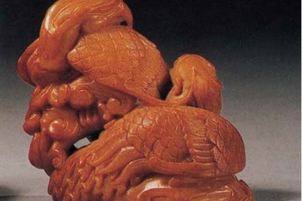 曾有友人以超高价、购得一方“田黄”对章;后来才知道并非田黄,而是寿山石的“高山黄”,仅属色近似,却与真田黄之温粹凝腻有差别。老坑“高山黄”上品虽然也值得收藏,但绝非值那么高昂价钱。例如附图的寿山石圆雕凤凰陈设件,色黄似田黄,但非田黄;然而工艺精妙造型美,石质不错,亦可藏玩。