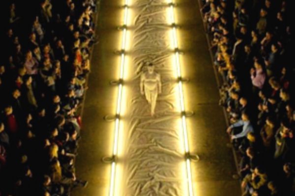 首先,通常被称为“持续性艺术”(durational art)或“耐力艺术”(endurance art)的创作策略尤其常见于行为艺术之中,尽管这也与早期录象艺术家用来打破电视循环播放所带来的持续刺激的“沉闷美学”密切相关。这是玛丽娜·阿布拉莫维奇擅长的领域,她邀请你参与一场长达750小时的凝视比赛(《艺术家在场》The Artist is Present)、刷洗骨架3次(《清理镜子I,II,III》Cleaning the Mirror I,II,III)或者静坐12天的挑战。 (相比之下,张培力只会在他的录像带播放时才会让你看到他砸碎一面镜子或冲洗一只鸡,这标志着作品更加关注持续性而不是耐力。)这里使用了术语“耐力”是因为艺术家不仅常常需要忍受长时间的表演,还得在生理上忍受其他形式的各种不适。 1996年,宋冬勇俯身趴在天安门广场的冰冷地面上长达40分钟,用呼吸所呼出的水汽在地面上结成了薄冰;张洹裸体坐在公厕中,直到苍蝇爬满身体;弗兰克·B(Franko B)则运用了一些特定的东欧传统,涉及仪式暴力和对身体的残害:在《我想你》(I miss you)的作品表演中,他带着伤口在T台上来回踱步,在表演过程中一遍又一遍地留下了渐深的血迹;谢德庆的作品系列《一年行为表演》之《笼子》、《打卡》、《户外》和《绳子》可以说进一步挑战了相关概念的边界。
