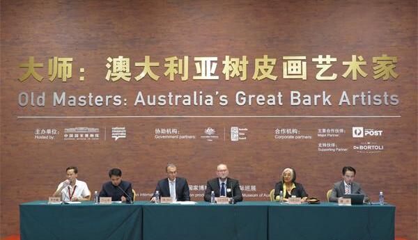 中国国家博物馆副馆长白云涛,澳大利亚国家博物馆馆长马修•特利卡,澳大利亚国家博物馆资深策展人麦克•皮克林和玛葛•尼尔出席了“大师:澳大利亚树皮画艺术家”展览的新闻发布会。白云涛副馆长表示,通过此次展览希望能使更多的中国观众认识、欣赏这些既具有原始生命力量,又具有现代形式感的树皮画,并通过展览为中澳两国人民深入开展进一步文化交流搭建新的、更加广阔的桥梁。马修•特利卡馆长提到,这次展览是中国国家博物馆和澳大利亚国家博物馆多年合作的结果,这种合作精神是极为重要的。这样的文化交流能够拉近两国和两国的人民的距离,让我们的关系进一步发展。