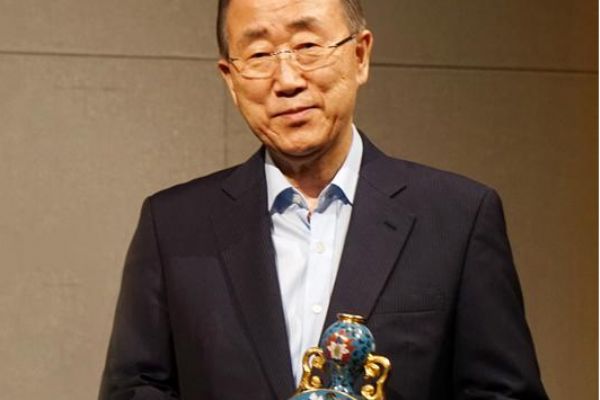 2018年8月19日,在韩国首尔,联合国前秘书长潘基文在联合国和平纪念馆访问中发表《人类若失去和平,世界将会变得怎样》主旨演讲,深刻阐述和平与发展这一当今世界的时代主题,唯有世界和平,才能实现全人类幸福和福祉。访问期间,潘基文获赠《景泰六福》,作品由中国景泰蓝工艺制作而成,蕴含了深厚的中国传统文化。