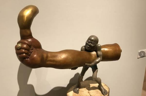 我们是一个容易好了伤疤忘了痛的国度。我想任何的社会现实都应该有真正的记录者和反思者,遗忘就容易重蹈覆辙和引来背叛。假疫苗这一恶迹令我愤怒之余又脑洞大开,“超常规”这件雕塑装置作品应运而生。我将前后相距近二十年的两件看似不相干的旧作生猛地砸在一起,一件充满人性正能量的红男孩狠狠地怼在一个充满迷狂拜物主义的抱猪男肩上,顿然产生了一种强大的视觉场域和时代特质。这是我将自己各个时期的所有作品作为现成品或元素进行超常规的解构与重建的创新性尝试。