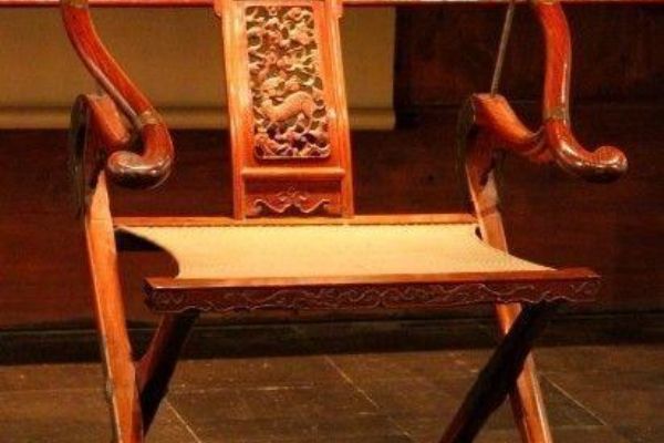 然而该交椅也并非处处完美无可挑剔。比如交椅的扶手下沉过多,几乎接近座面,显得局促;而交叉的四足,用料粗硕,过于壮实,与整体比例不甚协调。因此多数仿品并没有完全按照原物的腿足尺寸制作,说明上述观点是能够得到认同的。