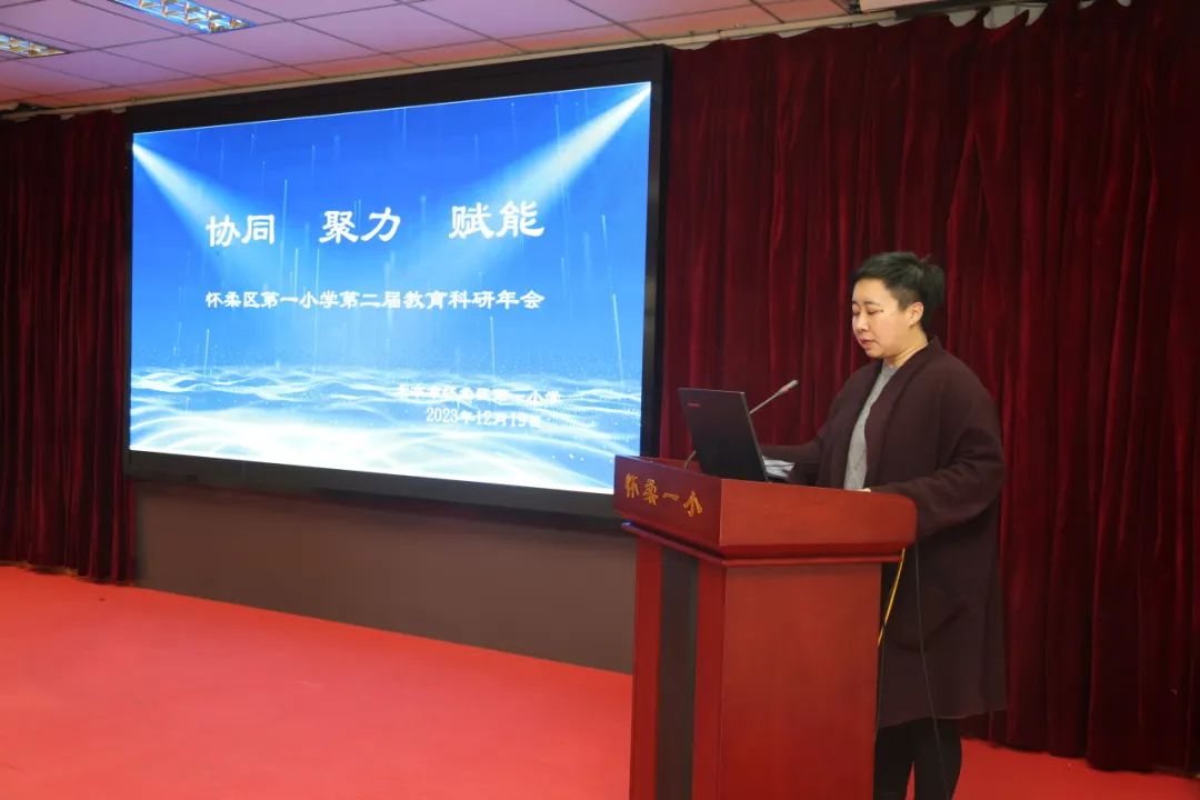 为了进一步落实双减,践行新理念,探索教育教学改革的途径和方法,提升教师教科研能力和专业化水平,促进学校内涵式发展,落实立德树人根本任务,怀柔一小2023年12月19日上午开展了第二届科研年会系列活动(一)。参加本次活动的有怀柔区教委小教科于海军科长,王欢老师,怀柔区教科研中心刘瑞峰老师、美术教研员于国菊老师,怀柔一小的钟凤林书记、罗士臣校长以及怀柔一小的全体干部和教师。本次活动由一小教学副校长肖维主持。