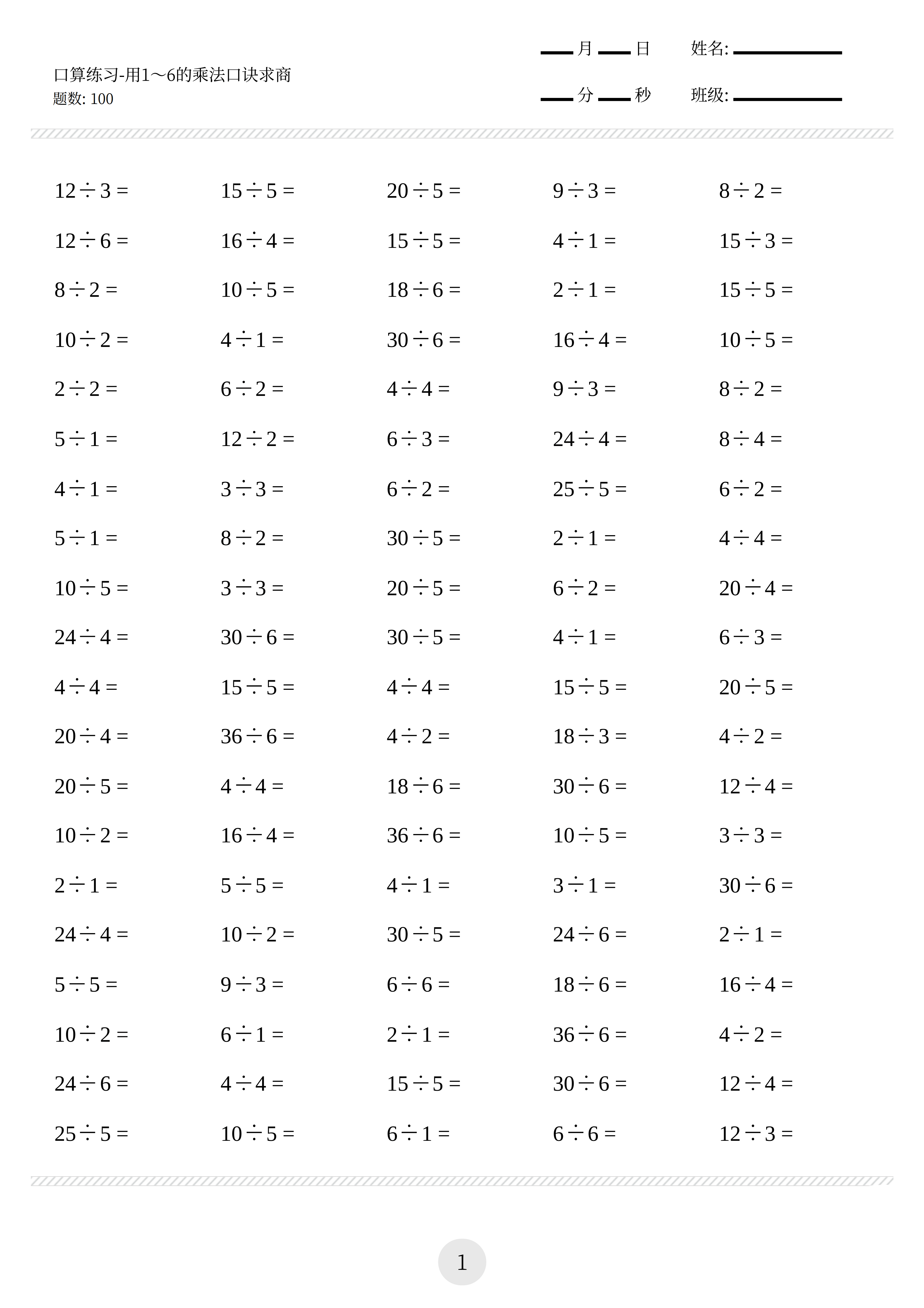 今天给大家分享:乘法口诀作为小学数学计算的重要基石,对孩子后续学习乘除运算、解决复杂数学问题起着关键作用。熟练掌握乘法口诀,能让孩子在计算时更加得心应手,大大提高运算速度与准确率。为了帮助孩子更好地巩固 1 - 6 的乘法口诀,我们精心准备了多套针对性的口算练习。
