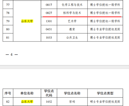 山东大学获批化学工程与技术、核科学与技术、艺术学一级学科博士学位授权点,教育、公共卫生博士专业学位授权点,以及密码硕士专业学位授权点。