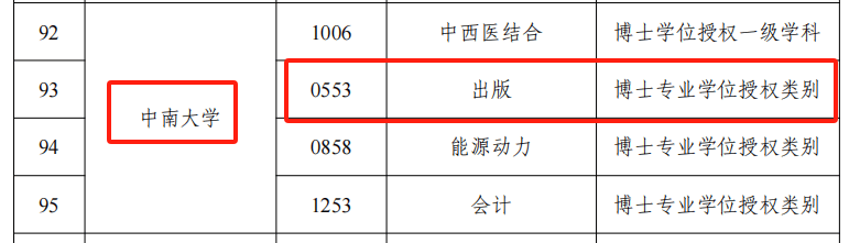 通知表明,中南大学出版、能源动力、会计博士专业学位授权点,中西医结合一级学科博士学位授权点已正式获批。自批准之日起,可开展研究生招生、培养以及学位授予工作。