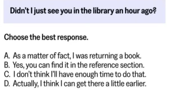 一共有8道题,考生根据提问或陈述选择符合语境的回答,同时考察听力理解和社交沟通能力。