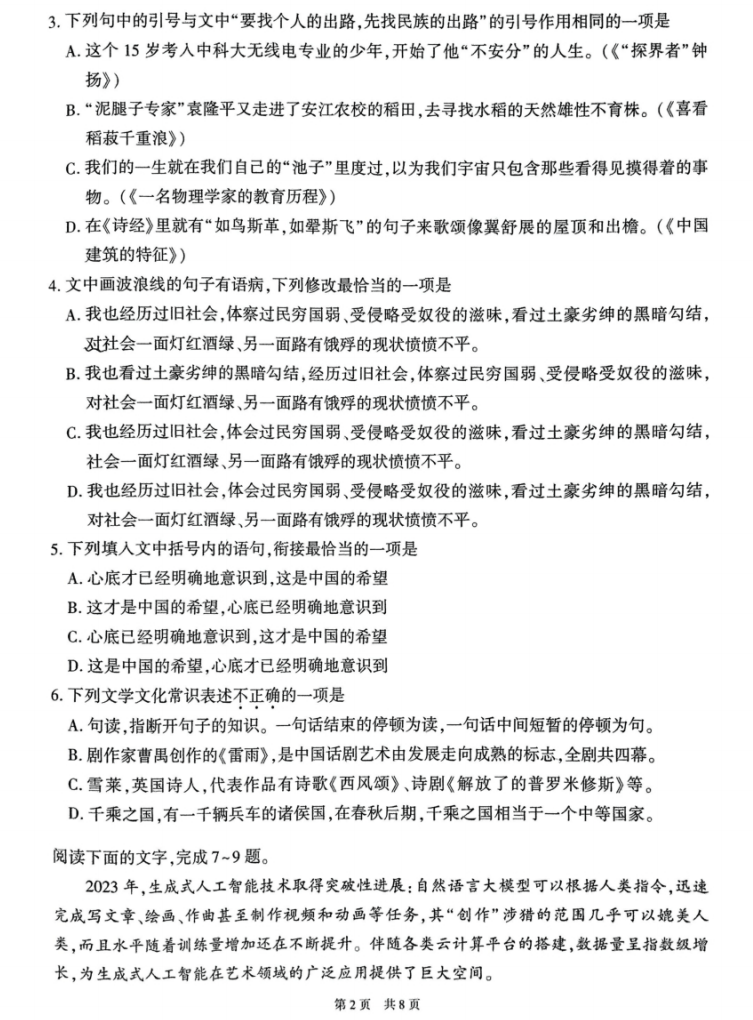 语文真题:根据 2019-2024 年高职单招语文历年真题考点试卷,有 35 道单选题,考查内容包括修辞手法、文学常识、字词辨析等。如 “下列各项中,修辞手法不同于其他三项的是()”,通过对不同语句修辞手法的分析来作答。