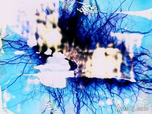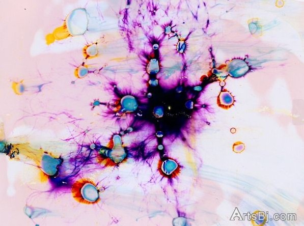 Phillip Stearns为了探究人类视网膜细胞的异同,用一种特殊的方法模拟了视网膜接受物体影像的过程。他把各种家用化学制品倒在胶片上,然后用1.5万伏的高压电电击这些化学制品,电击的瞬间,胶片上显示了这些五颜六色的涂鸦,如同物体在视网膜上的成像,部分胶片由于高温电击还燃烧成洞。