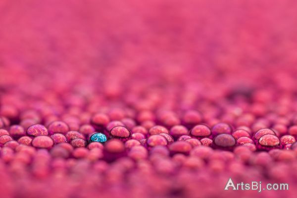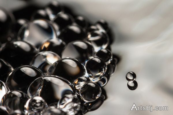 虽然都是一些比较便宜的微距器材,但摄影师相当用心于色彩,材质的处理,加上使用不同的材料如胶珠(粒)、肥皂、维他命C 等等,背景方面则运动了羽毛,树叶,甚至T-shirt,让作品看起来七彩玄幻。当然其中有一些并不是水珠,是一些透明的材质,或是一些混合了其他物质的水珠。