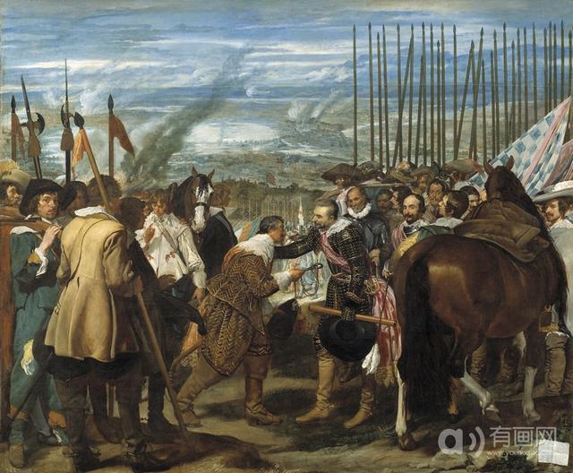公元1625年6月2日,荷兰布列达(Breda)要塞向西班牙军队投降。三天后,荷兰要塞司令纳索(Justin de Nassau)将该城的钥匙交给弗朗德勒步兵团司令官,热那亚人斯皮诺拉(Ambrosio de Spino-la)。