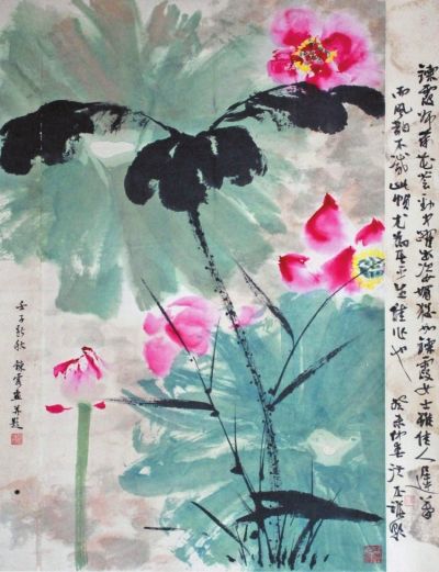 海上闺秀书画家中,有两位是当今炒得红紫的,曰陈佩秋和吴青霞。陈佩秋先是谢雅柳的学生继而夫人,花鸟画风上有老公谢氏的一些影子,直追宋元,空灵坚实,合工笔与写意为一炉,风格遒劲妍丽。山水作品工笔重彩,墨韵精华,墨重色浓得恰到好处,拍卖市场上动辄十万二十万一平尺,影响极大。陈佩秋亦工书法,以草书耀眼书坛和拍卖市场,价格不菲,但其作品中时有草法交代不清的现象,所以应该归入“名人书法”之列。吴青霞得享98岁高寿,于2008年逝世。伊绘画山水、人物、花卉、翎毛、虫鱼备极纯熟,名声极响亮,观其山水、人物倒能入古,但创作量颇大的《芦雁图》和《锦鲤图》;虽然市场行情很看好,但总觉有些许世俗之气在画中也。