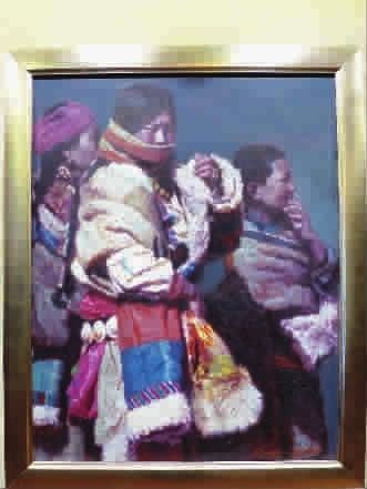 这幅《期待》(见图),也是陈先生西藏题材的代表作之一。画作笔法豪放中不失细腻,三位女藏民几乎占了整个画面,又用构图、色彩和人物细微的表情与一角灰暗天色背景产生强烈对比,人物面容、皮肤、手势和服装都具有鲜明个性,笔触圆融雄健而具动感,积色厚重,使女性的淳朴宁静与深邃神圣的高原文化铸就了画面的壮美效果和浑厚气局。正如一位评论家所说,西藏题材作品成就了陈逸飞从艺术家向大师的飞跃。 (晓笛)
