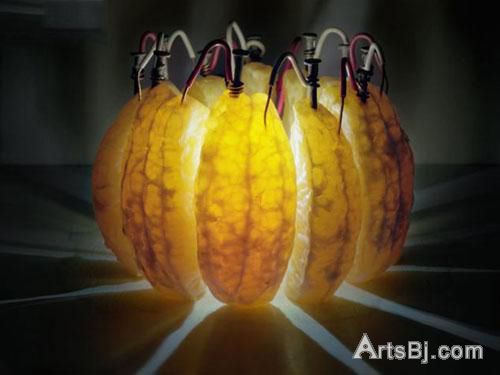 据英国《每日邮报》5月26日报道,美国缅因州班格尔市艺术家卡莱布·查兰(Caleb Charland)近日受土豆电池的启发,将镀锌钉、灯泡、铜线以及数个水果相连,打造出自供电的水果灯,还拍摄出极具美感的奇幻艺术照。这些水果灯晶莹剔透、魅力非凡,显示出可持续能源的巨大发展前景。