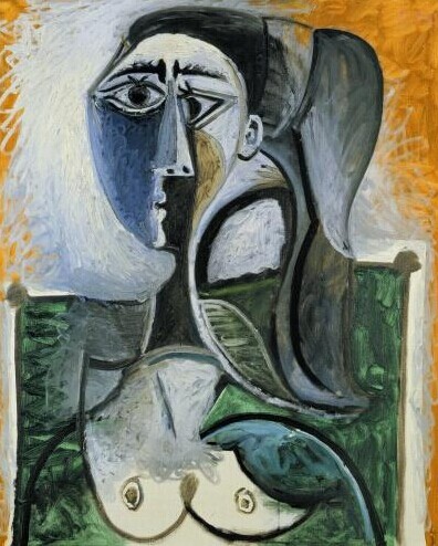 毕加索《坐着的女人半身像》 布面油画 1960年 100cm×81cm(版权归科尔马恩特林顿美术馆所有,摄影师Christian Kempf)