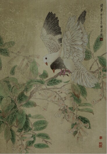 画家在近几年里创作了大量“鸽子”为主题的作品,从深层的意义来说,画家是借用对鸽子的体验与感悟表达出自己内心的诉求:那种崇尚仁爱和谐、和平自由、以“仁和”为重的儒学精义所诠释的文化理念。