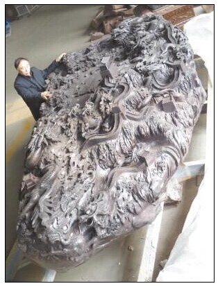 资深石头及砚台收藏者张晶廷,几番深山寻宝,觅得30吨砚石一块。他精心设计并邀请专业砚台雕刻大师,将该石雕成一方重约18吨的大型砚台。他说,砚台是“文房四宝”之一,承载了中华民族特有的文化,希望它能传世。