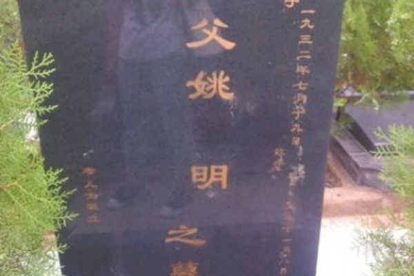未刻字的墓碑上写有“慈父姚明”。