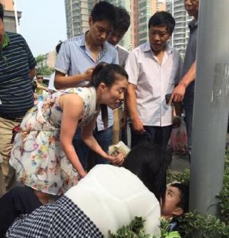 辅警被被推倒在绿化带。图片来源:南京市公安局交通管理局官方微博