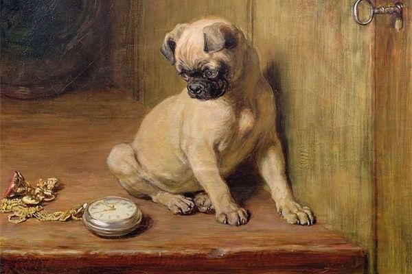 英国艺术家Briton Rivière创作于1881年的作品《Tick-Tack》