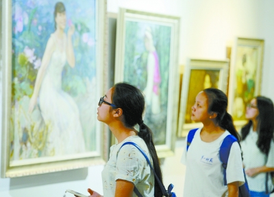 9月16日,长沙市博物馆展厅,观众在参观“穿越历史 岁月留魂”易利森油画艺术60周年回顾展。